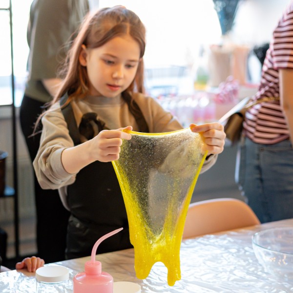 PESA lima-töötuba ühendab kõik selle sensoorse headuse isetegemise rõõmu, mängu ning uute teadmistega, kusjuures täiesti ohutult - kasutame ainult EL-i ohutussertifikaatidega booraksivabu baasaineid, biolagunevat sädelust, toiduvärve ja kvaliteetseid eeterlikke ja aroomiõlisid. Iga meisterdaja saab ise valida oma limade värvid, õrna lõhna ja sädeluse.