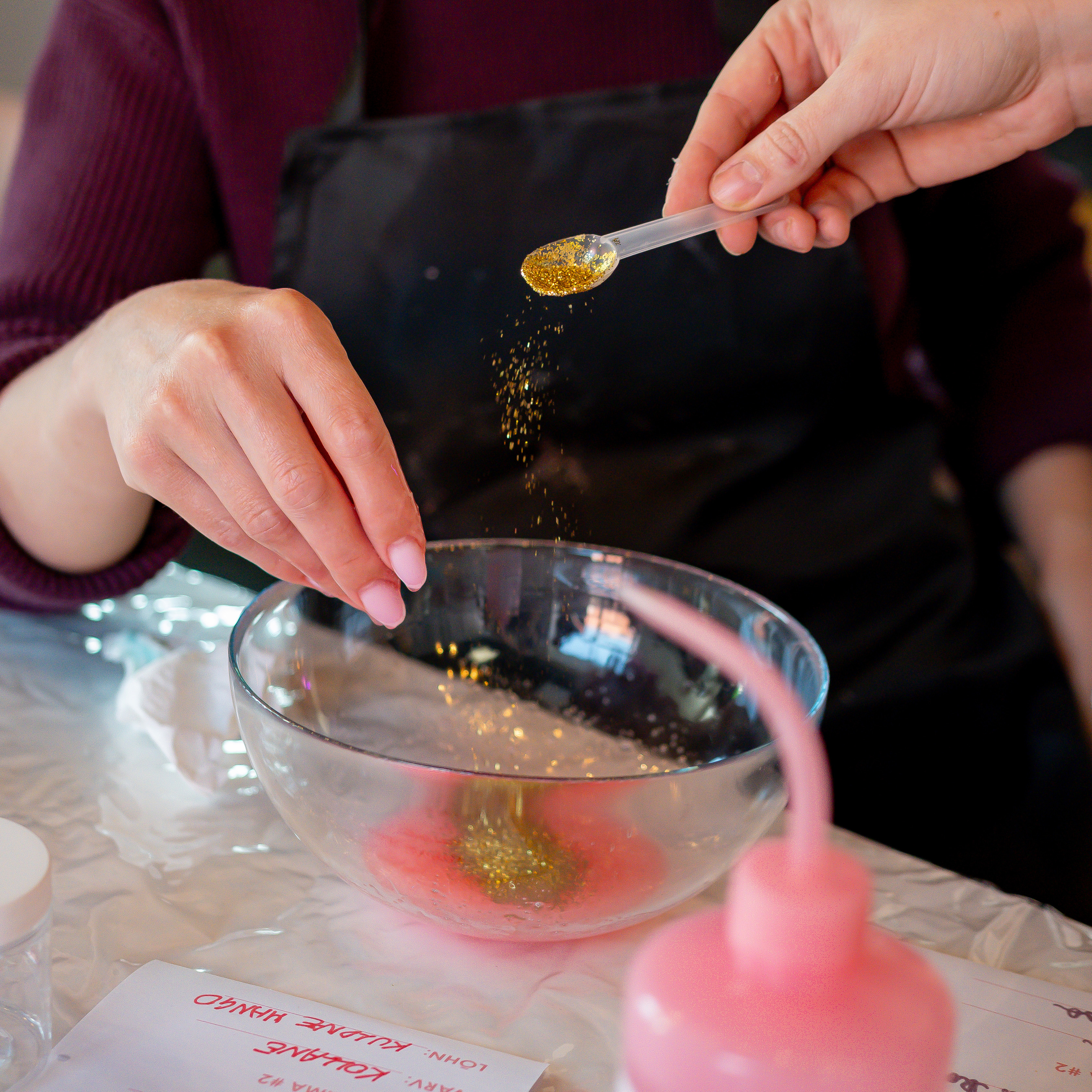 PESA lima-töötuba ühendab kõik selle sensoorse headuse isetegemise rõõmu, mängu ning uute teadmistega, kusjuures täiesti ohutult - kasutame ainult EL-i ohutussertifikaatidega booraksivabu baasaineid, biolagunevat sädelust, toiduvärve ja kvaliteetseid eeterlikke ja aroomiõlisid. Iga meisterdaja saab ise valida oma limade värvid, õrna lõhna ja sädeluse.